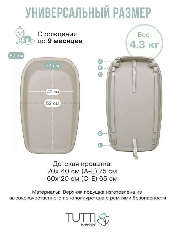 Подложка Cushi сделана с заботой о родителях: она подходит для разных пеленальных поверхностей! Вы можете использовать ее на комоде, тумбе, столике, различных кроватках с реечными боковинами (120х60, 140х70 см). Небольшой вес позволяет легко перенести подложку с кроватки на комод. Для безопасной установки на бортики кроватки предусмотрены надежные ремни — они уже входят в комплект.