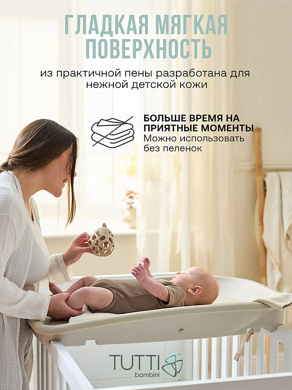 Пеленальная доска Tutti Bambini Cushi на жестком основании— настоящая палочка-выручалочка для современной мамы. Нежный, мягкий и гладкий материал не раздражает чувствительную детскую кожу, делая процедуры пеленания и смены подгузника простыми и невероятно комфортными. Очень легкая в уходе: если произошла неприятность, просто протрите влажной тканью или салфеткой. Не нужно отвлекаться, чтобы поменять чехол или постирать пеленку — проводите больше времени с малышом без хлопот и суеты!