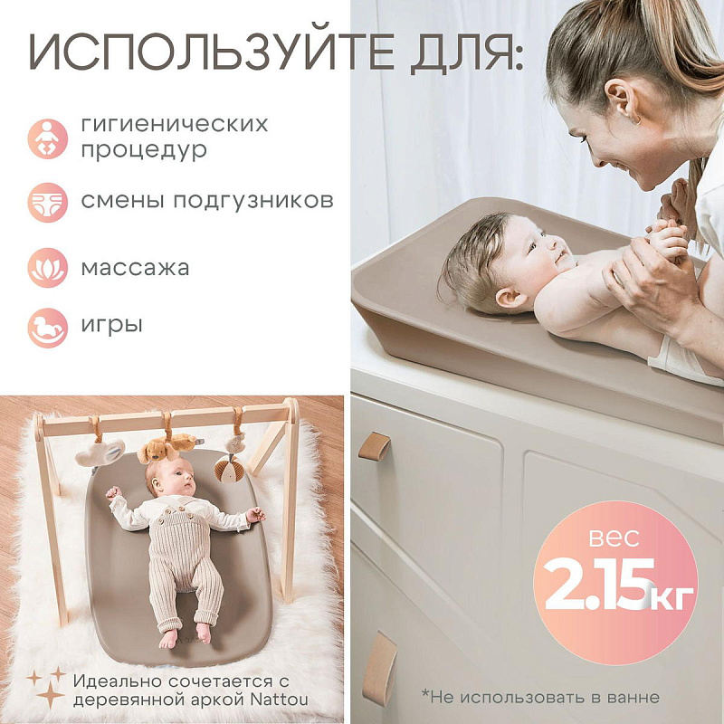 Подложка-матрасик Nattou пеленальная 68,5x48x7,5 см taupe 145077