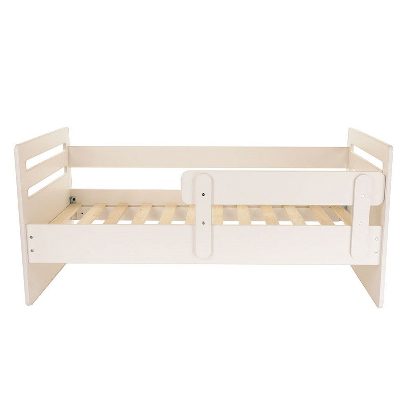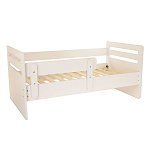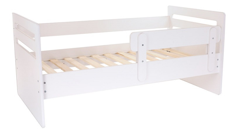 Кровать для подросткового возраста, выполнена из ЛДСП класса Е1, обработка кант, реечное дно (массив лиственных пород). Ограничительный бортик съемный. Размер спального места стандартный, подходит для детей ростом до 150 см.