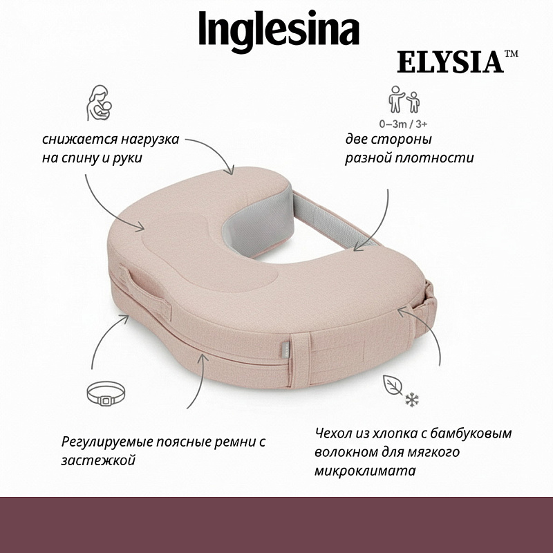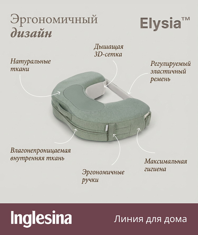 • Подушка Elysia от Inglesina получила сертификат эргономичности IGR, который подтверждает, что изделие обладает отличными эргономичными характеристиками в соответствии со стандартами DIN EN ISO 26800 и EN ISO 15537.