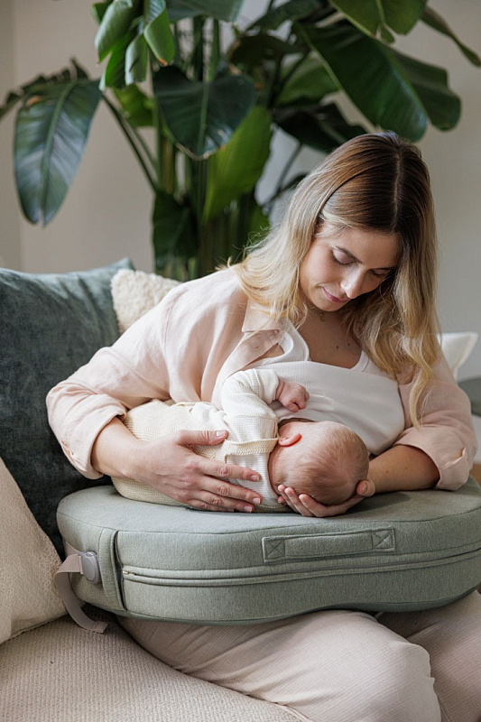 • Сторона «Первое молоко» идеально подходит для новорожденных (0–3 мес.): более твердая поверхность поддерживает голову, шею и тело ребенка, способствуя прикладыванию к груди, когда мышцы еще слабы.