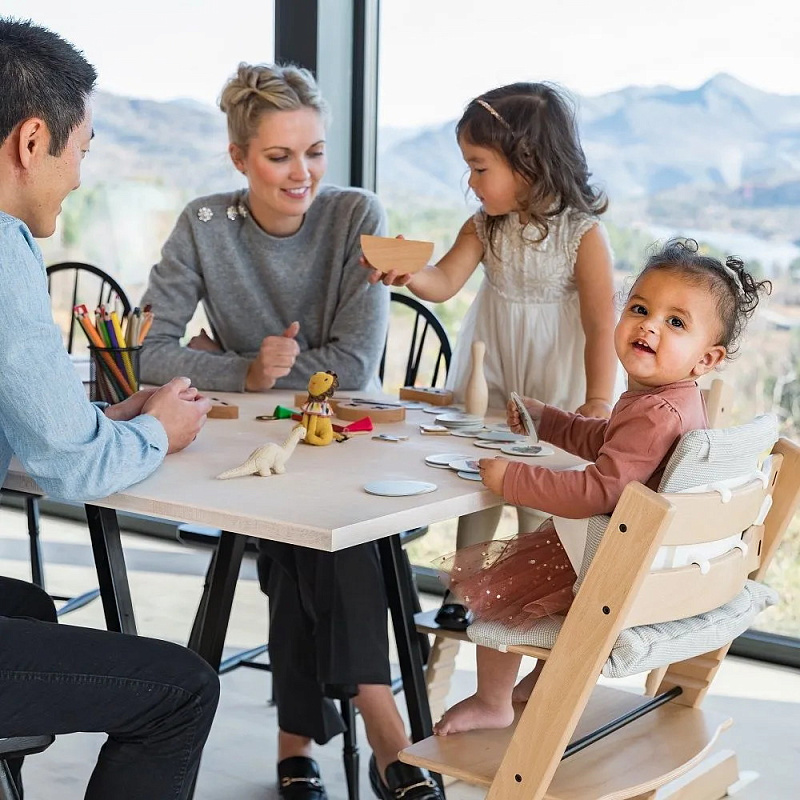 Задумывались ли Вы когда-нибудь, насколько важно для малыша в первые годы его жизни чувствовать себя полноправным членом семьи? В современной жизни с её сумасшедшим ритмом порой очень сложно сохранить прекрасные семейные традиции, такие как пышное семейное торжество или повседневный семейный обед. В такие важные моменты нельзя лишать маленького ребёнка возможности находиться рядом со всей семьёй и ощущать себя её неотъемлемой частью.Как же разместить малыша за столом так, чтобы ему было приятно и комфортно? Обычные стульчики для кормления, как правило, не соотносятся по высоте с высотой стандартного обеденного стола. Известный норвежский дизайнер Питер Опсвик, наблюдая за своим сыном, задумал решить эту проблему — так появился на свет уникальный в своём роде стульчик Stokke Tripp Trapp.