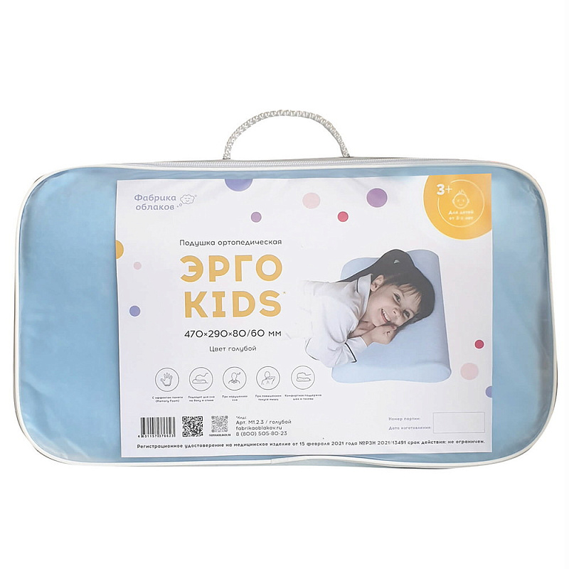 Ортопедическая подушка Эрго с двумя валиками разной высоты рекомендована детям в возрасте от 3 лет.