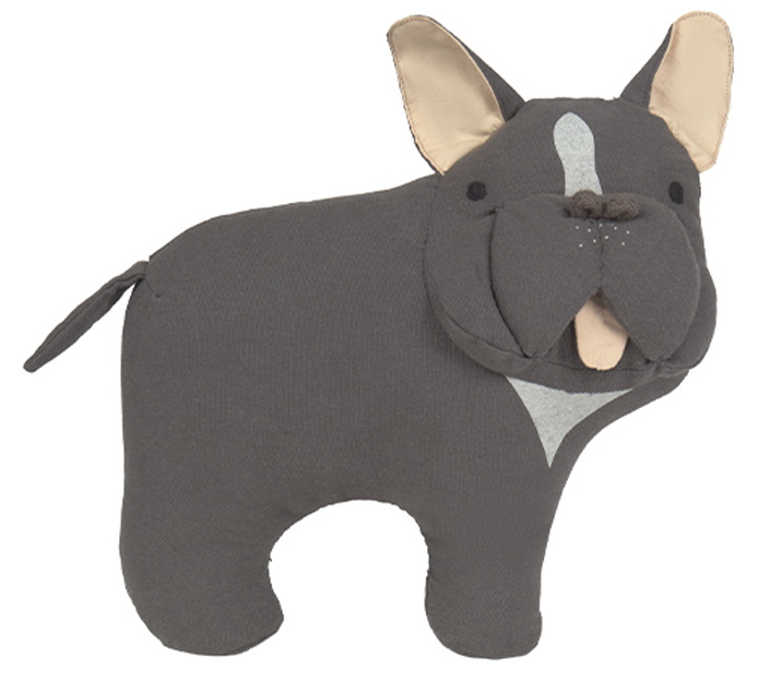 Познакомьтесь с Джимми! Ваш идеальный маленький компаньон. Эта забавная подушка ручной работы выполнена в форме настоящего французского бульдога из мягкой хлопчатобумажной ткани со светло-серым принтом.