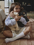 У нее заостренные ушки, которые стоят вертикально, высунутый язык и выразительный носик из шнура, как у настоящего французского бульдога!