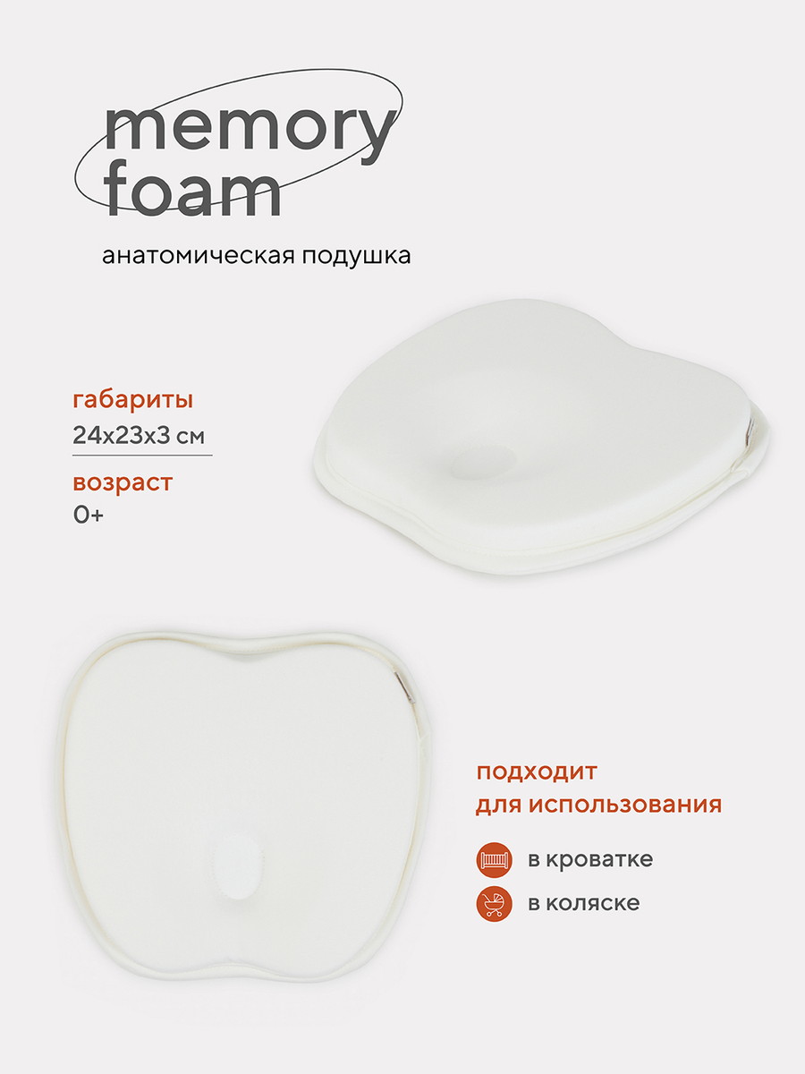 анатомическая подушка memory foam («запоминает» положение, в котором малышу наиболее комфортно) полностью расслабляет мышцы шеи, обеспечивая нормальное кровообращение и снижая мышечный тонус
