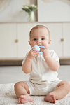 Невесомая погремушка с рельефной поверхностью бережно массирует дёсны при кусании, развлекает и успокаивает ребёнка, благодаря деликатному звучанию. Игрушка тренирует мелкую моторику, развивает слух и зрение. Малышу будет удобно держать её в руках с первых дней жизни. Покрытие погремушки — из пищевого Platinum-силикона высочайшего качества, в его составе отсутствуют токсины или вредные примеси. Игрушка выполнена в нежных, пастельных оттенках, гармонично дополняя интерьер детской.