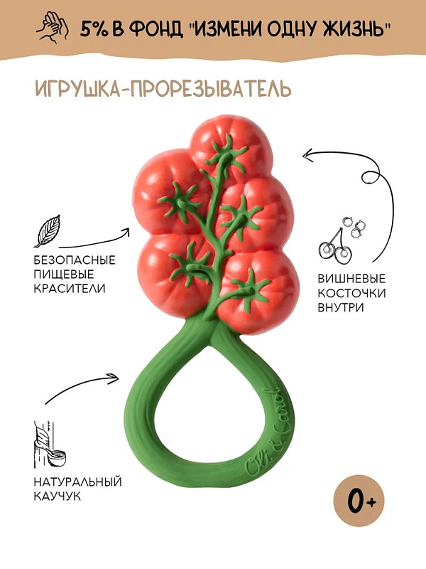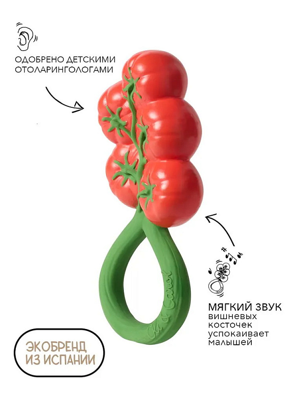 Коллекция погремушек-прорезывателей в виде фруктов и овощей от бренда Oli&Carol – это экологичные игрушки 2-в-1 из натурального каучука, окрашенные вручную пищевыми красителями и наполненные переработанными косточками вишни. Приятный звук погремушки успокаивает и не вызывает перевозбуждения у детей.