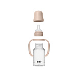 В составе набора — бутылочка, соска, сменная крышка, ручки для бутылочки.