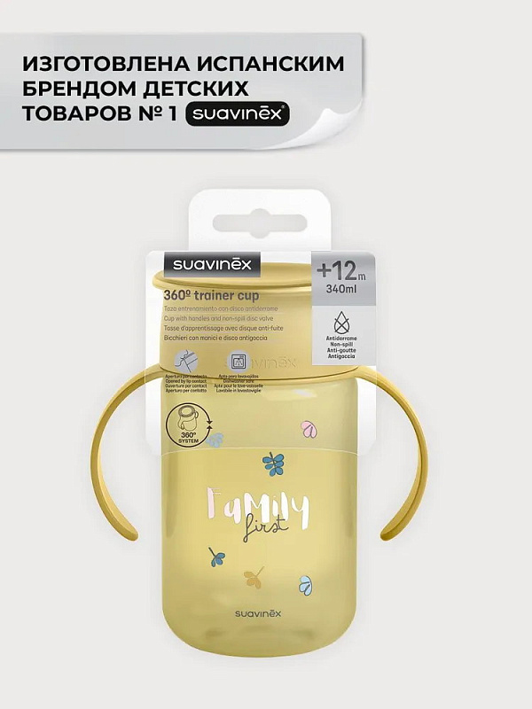 Легкий и удобный поильник-непроливайка 360° Suavinex станет отличным помощником в приучении малыша к самостоятельному питью.