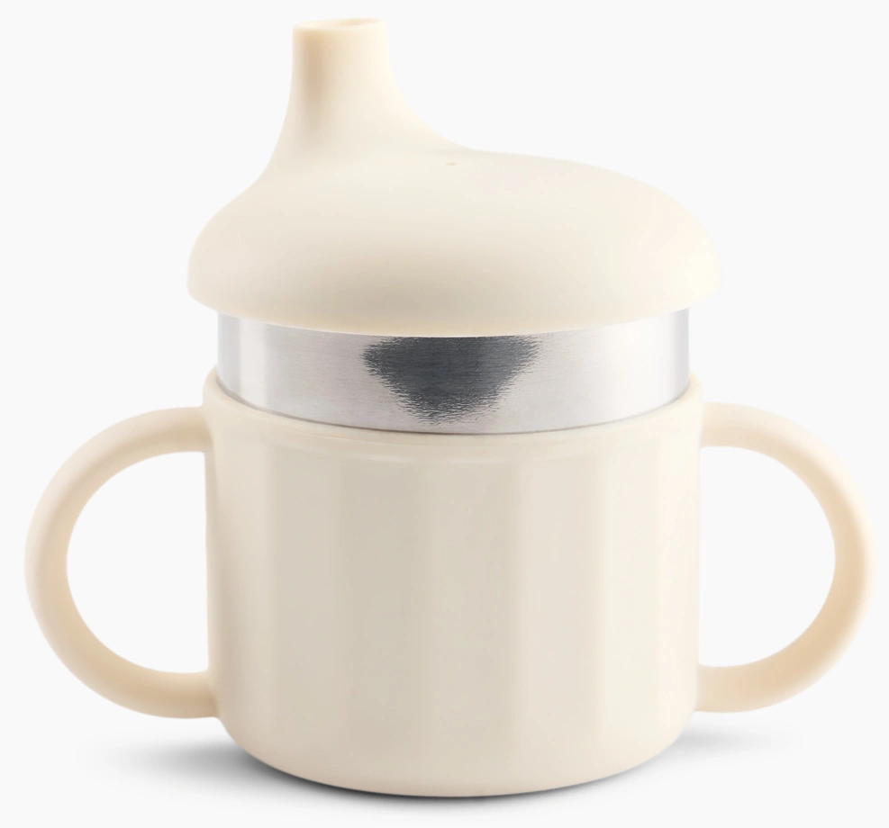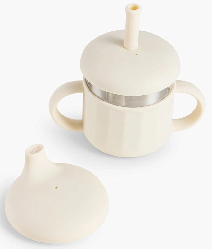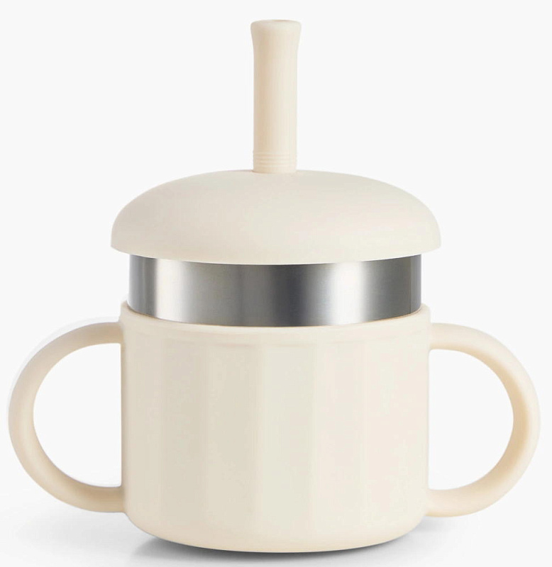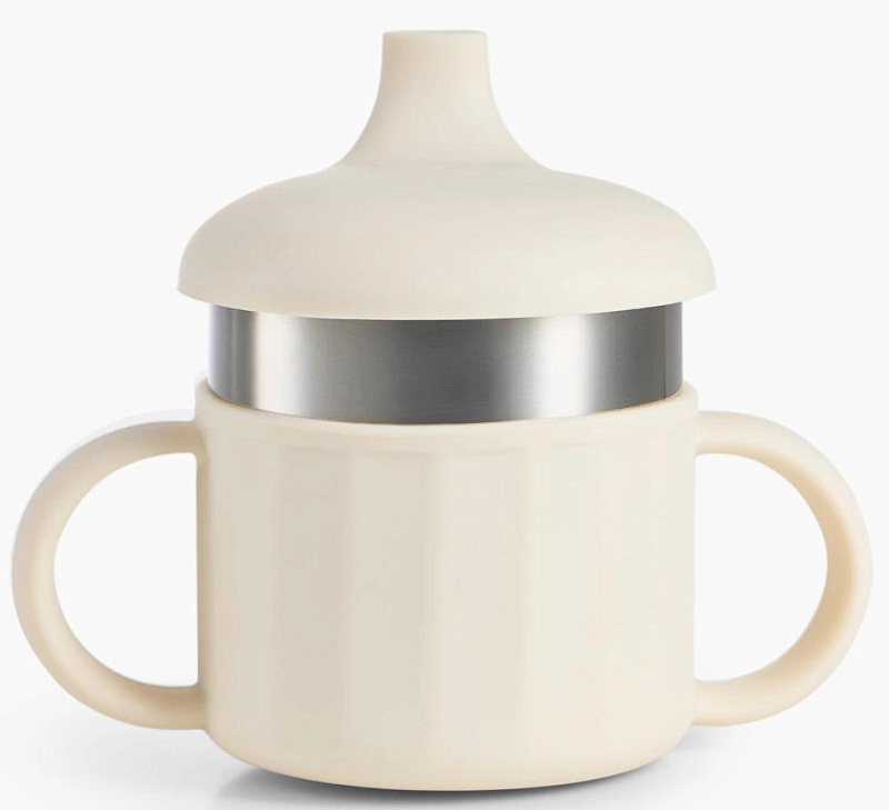 Практичный и безопасный дизайн - прочный силиконовый корпус защищает стакан, а две удобные ручки помогают ребёнку развивать навык самостоятельного питья