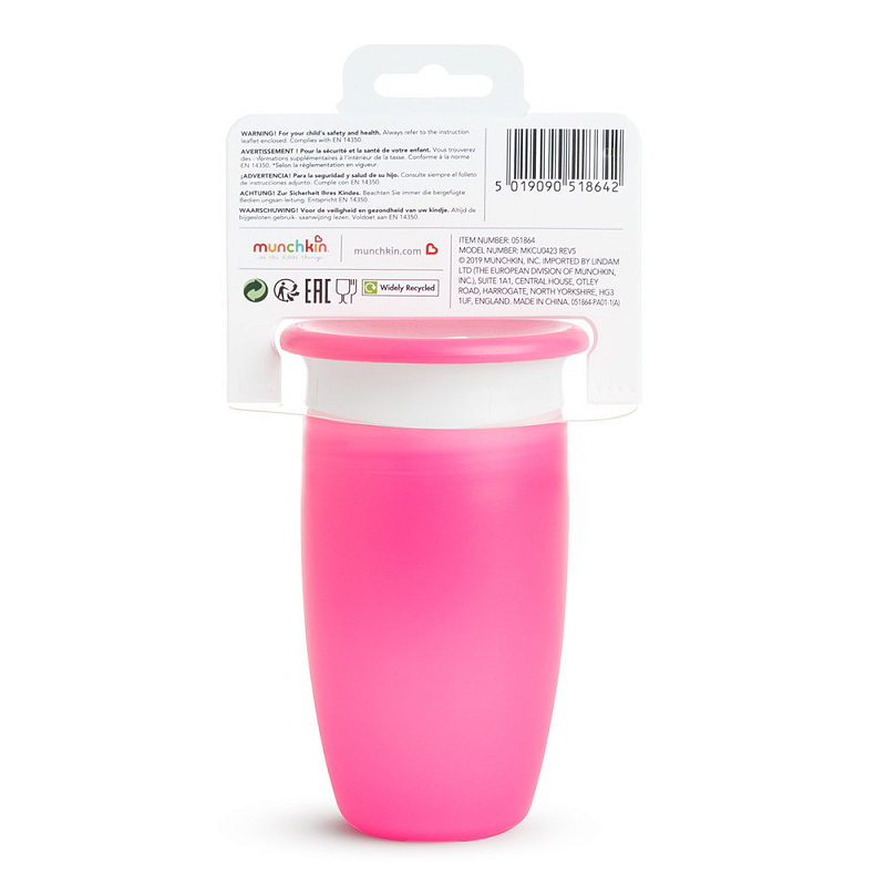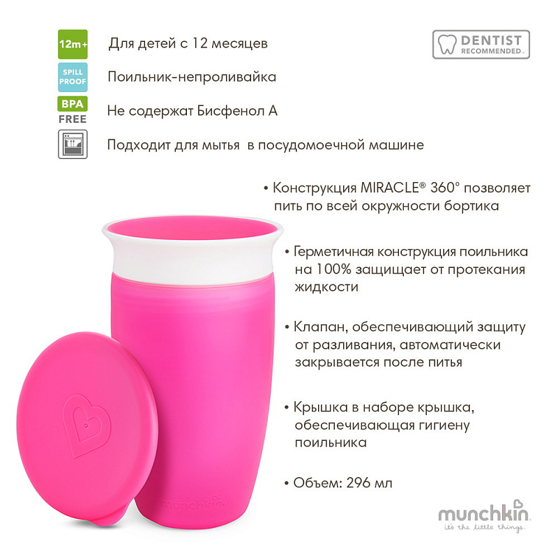 Поильник непроливайка Munchkin Miracle 360° с крышкой 296 мл. с 12 мес. 12096/51859PK розовый