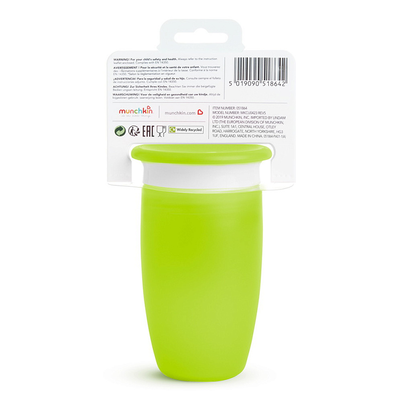 Поильник непроливайка Munchkin Miracle 360° с крышкой 296 мл. с 12 мес. 12096/51860G зеленый