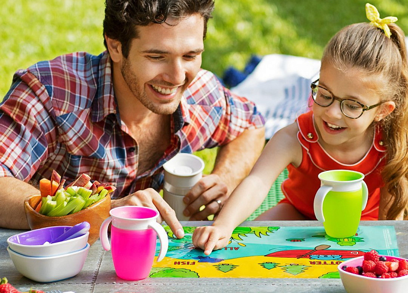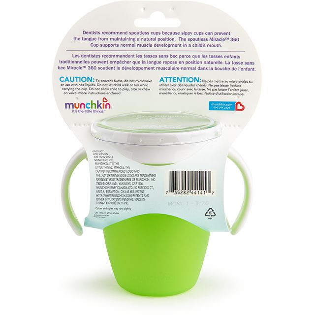 Поильник Munchkin MIRACLE® 360° создан с учетом потребностей как детей, так и родителей. Он предотвращает любые проливания напитка, а благодаря мягкому и гибкому материалу бережет зубы и десны малыша. Пить свой напиток малыш может по всей окружности - жидкость равномерно распределится под крышкой, под каким бы углом ребёнок не наклонил поильник. А еще поильник Munchkin MIRACLE® 360° помогает поддерживать нормальное развитие мышц во рту малыша. Никаких дополнительных носиком, соломинок и прочего, - поильник Munchkin MIRACLE® 360° прост в использовании и мытье. Из него можно пить сидя, на ходу и даже лежа! Поильник-непроливайка Munchkin создан специально для приучения малыша пить из взрослой чашки.