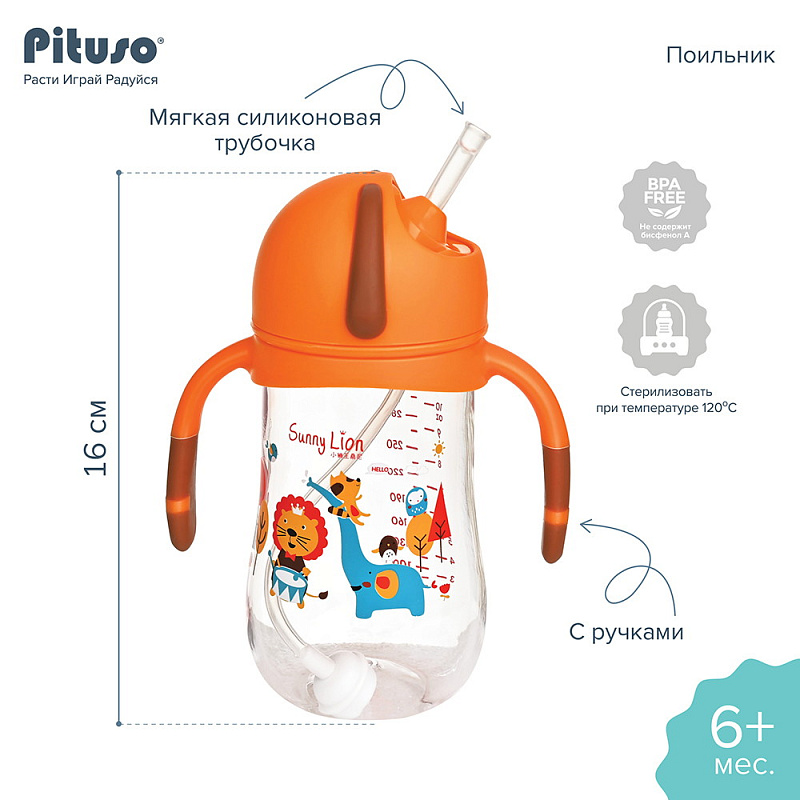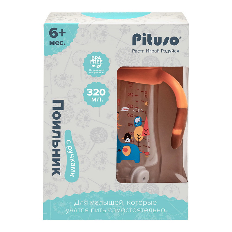 Поильник с ручками Pituso Tritan 320 мл Orange (Оранжевый)