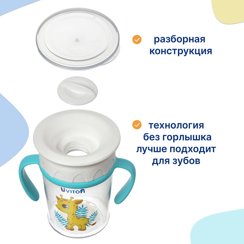 Поильник непроливайка 360 тренировочный от Uviton – позволяет ребенку легко и быстро привыкнуть пить с края как из обычной кружечки.
