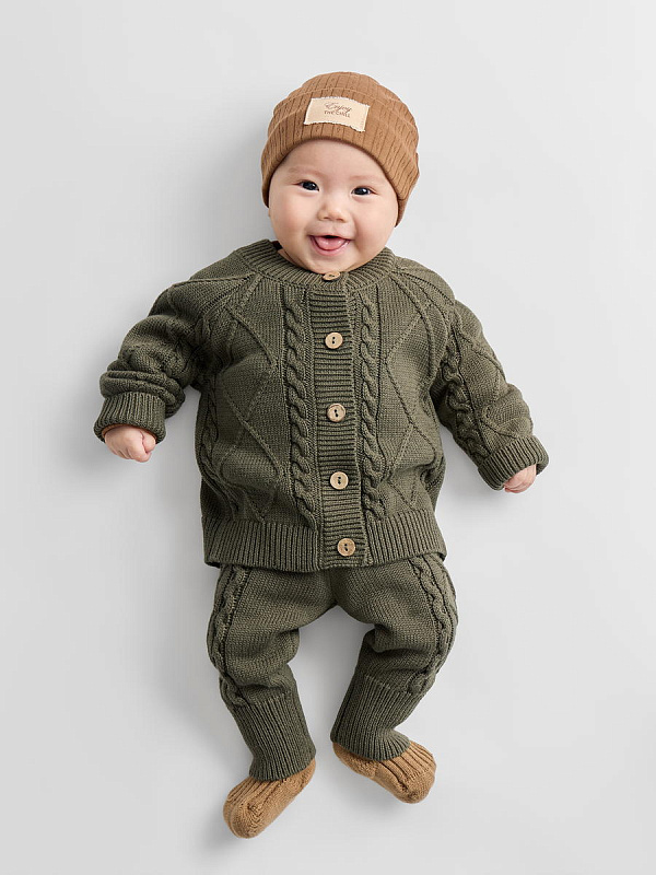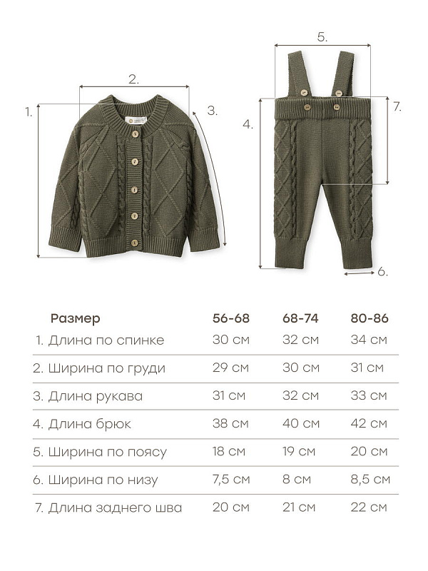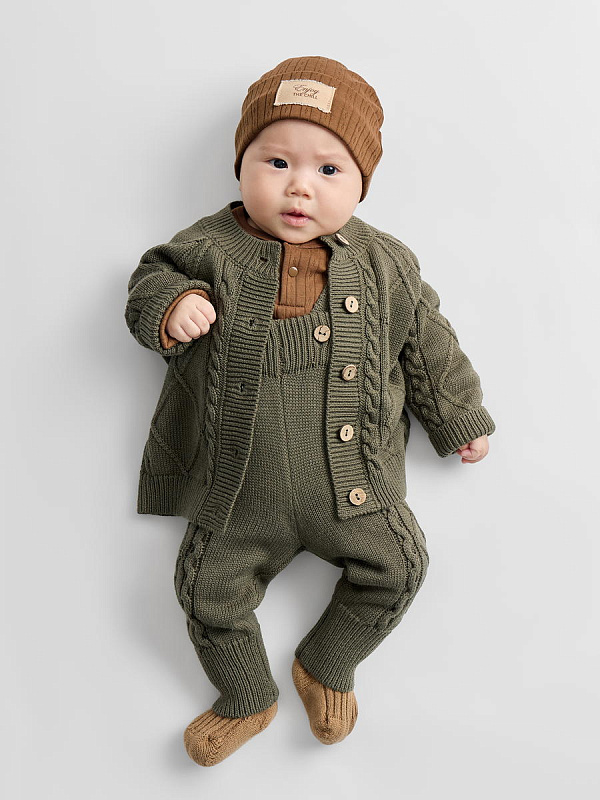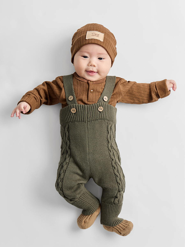 Костюм для новорожденных - практичное решение для повседневных прогулок или ежедневной носки в любое время года. Вязаный костюм двойка: полукомбинезон и кардиган отличается стильными расцветками и комфортной посадкой, подходит для мальчиков и девочек.