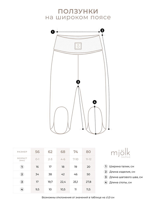 Ползунки Mjölk [мьёльк]– мягкие штанишки с закрытой ножкой на всех размерах. Ползунки созданы с высоким и широким эластичным поясом, благодаря которому нежно облегают животик и закрывают спинку, не раздражая кожу и не оставляя следов.