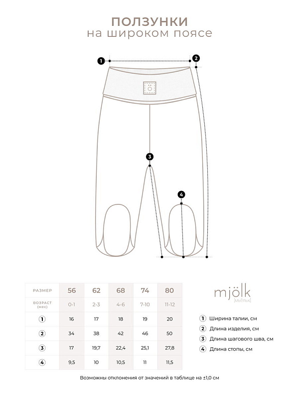 Ползунки Mjölk [мьёльк]– мягкие штанишки с закрытой ножкой на всех размерах. Ползунки созданы с высоким и широким эластичным поясом, благодаря которому нежно облегают животик и закрывают спинку, не раздражая кожу и не оставляя следов.