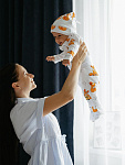Ползунки упакованы в нежный фатиновый мешочек с лентой и станут отличным подарком любому, у кого в семье есть малыш.