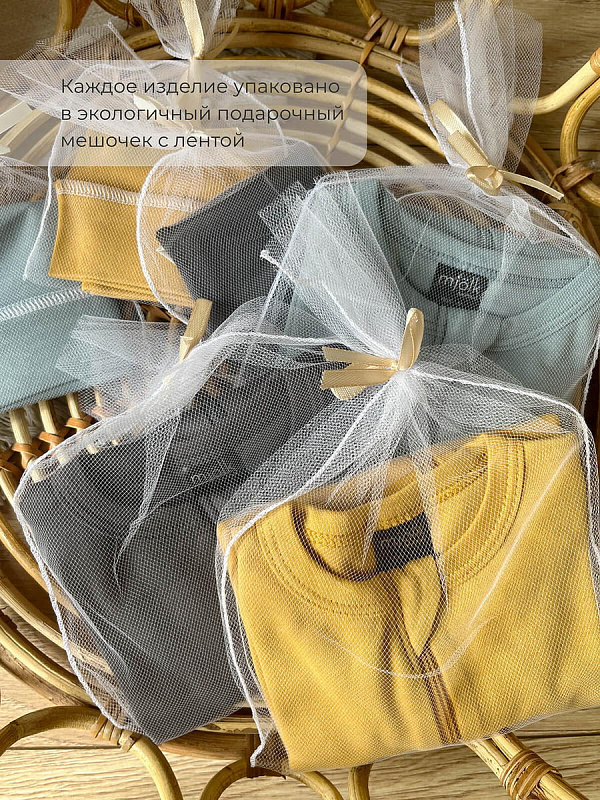 Ползунки упакованы в нежный фатиновый мешочек с лентой и станут отличным подарком любому, у кого в семье есть малыш.