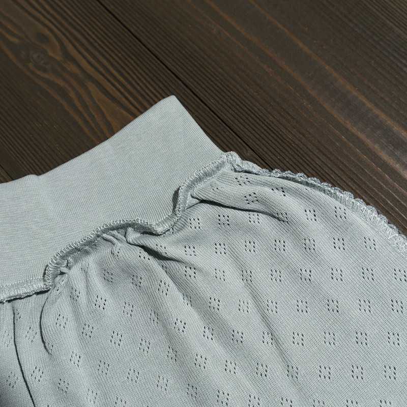 Трикотажные Vikalex Ажур полынь на широкой резинке на поясе не стесняют движений. Швы наружу не придают дискомфорта. Ткань хорошо пропускает воздух благодаря натуральному составу.