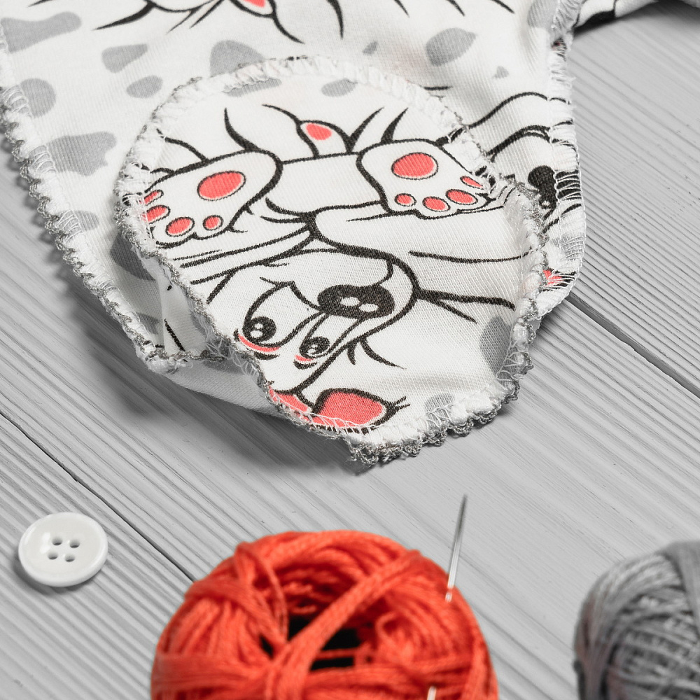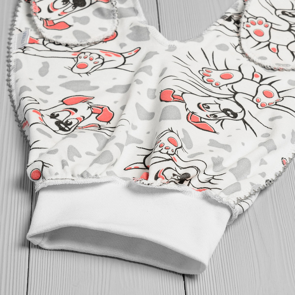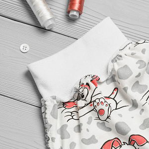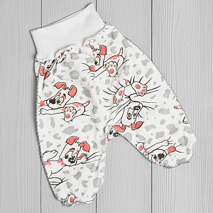 Трикотажные ползунки с широкой резинкой на поясе не стесняют движений. Швы наружу не придают дискомфорта. Ткань хорошо пропускает воздух благодаря натуральному составу. Модель украшена рисунком.
