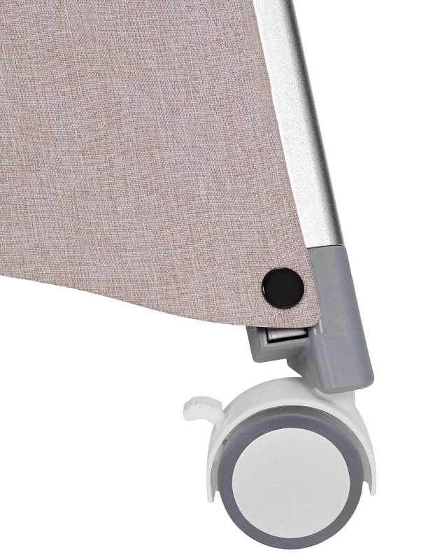 Ножки оборудованы четырьмя колёсами предоставляя вам возможность легко перемещать кроватку. Все колёса фиксируются.