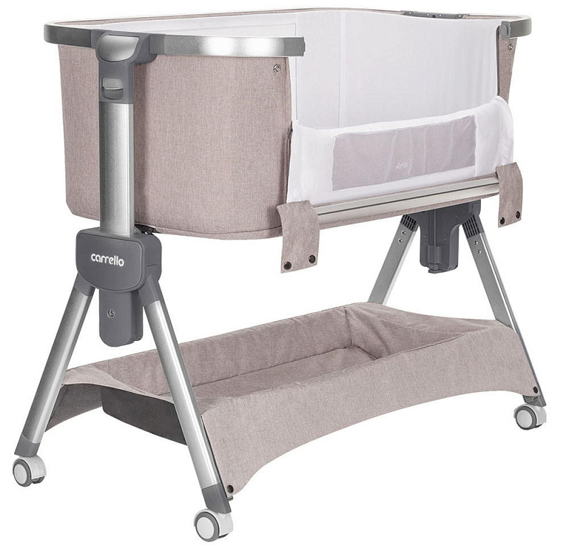 Приставная кроватка 2 в 1 Carrello Aria надежная и комфортная приставная кроватка с гибкой настройкой и компактным складыванием. Матрасик входит в комплект кроватки и фиксируется внутри при помощи липучек. Циркуляция воздуха, гипоаллергенные материалы и жесткое основание кроватки гарантируют здоровый сон малышу. Кроватка может использоваться как самостоятельное изделие и в качестве приставной кроватки.