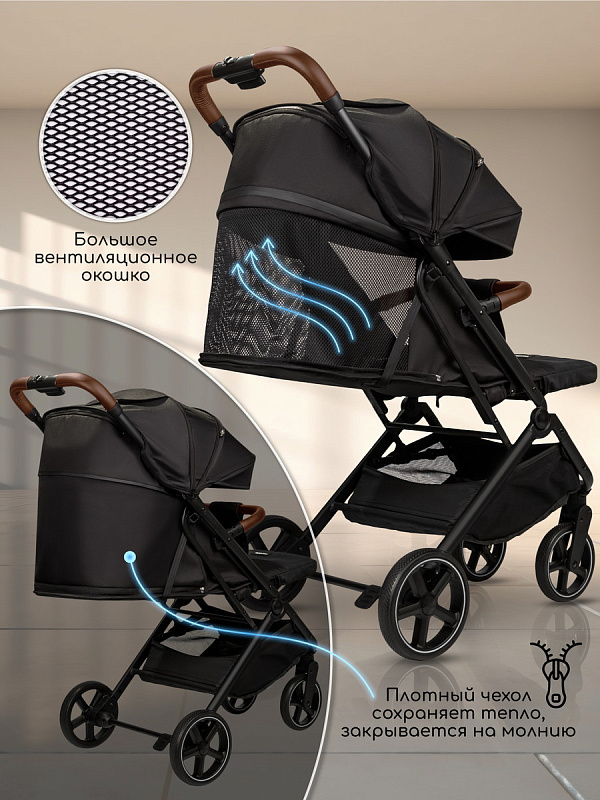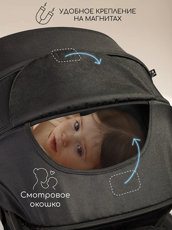 Глубокий капор служит защитой от непогоды и солнца, есть смотровое окошко, чтобы вы могли наблюдать за своим малышом во время прогулки.