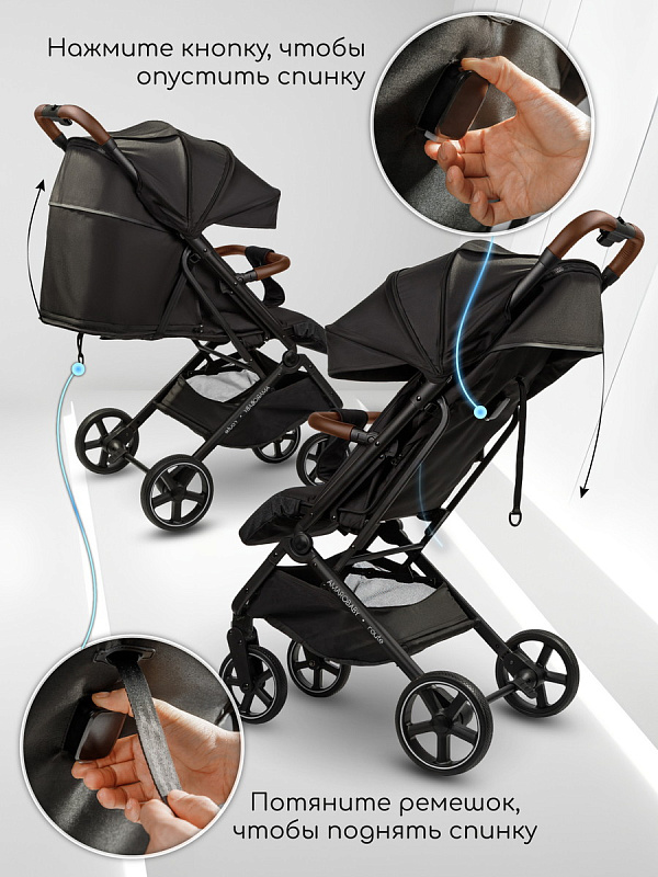 Спинка легко регулируется в свободное положение, что позволяет ребенку сидеть или лежать с оптимальным комфортом. Ткань коляски также можно снять и постирать, что обеспечивает ее долговечность и чистоту.