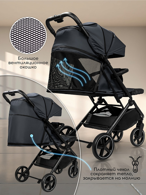 Глубокий капор служит защитой от непогоды и солнца, есть смотровое окошко, чтобы вы могли наблюдать за своим малышом во время прогулки.
