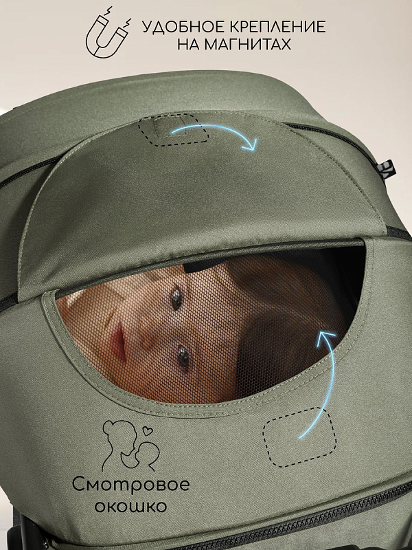 Глубокий капор служит защитой от непогоды и солнца, есть смотровое окошко, чтобы вы могли наблюдать за своим малышом во время прогулки.