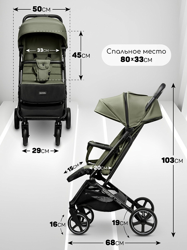Прогулочная коляска AmaroBaby Route хаки