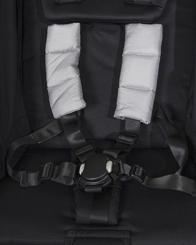 Бампер 360 градусов в сочетании с паховым ремнем защитит ребенка от выпадания. Бампер можно отстегнуть и откинуть, с одной стороны, благодаря чему Ваш ребенок сможет забраться в коляску самостоятельно, а 5-точечные ремни с мягкими плечевыми накладками и магнитная полуавтоматическая застежка (фастекс) с сильными магнитами будет служить дополнением для безопасности ребенка.