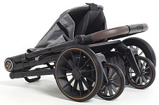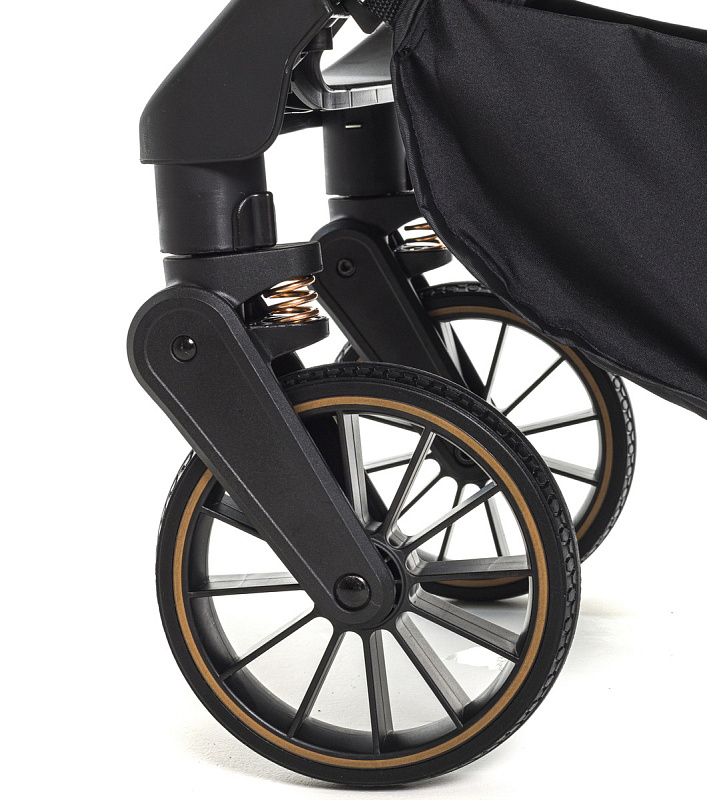 Коляска легкая, маневренная и отлично управляется даже одной рукой и отличается более мягким ходом, благодаря амортизации. Все колеса из EVA, а передние колеса поворотные на 360 градусов с системой амортизации «Anti Shock» (поглощение колебаний), обеспечивают мягкий и плавный ход коляски, а также разворот ее в любую сторону, даже на неровной дороге, при желании их можно заблокировать для движения прямо. Тормозная система EASY STOP. Регулируемая родительская ручка в 4 положениях позволяет настроить высоту ручки под рост родителей, что обеспечивает более комфортное управление коляской.