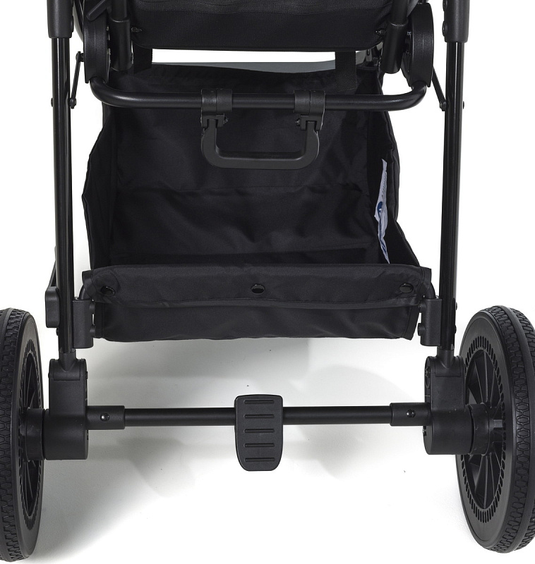 Длинная, регулируемая подножка регулируется легким нажатием кнопок сбоку и обеспечивает нужную поддержку ножек ребенка младшего возраста, а ее защитный материал на всю ширину придает легкость в эксплуатации, всегда можно протереть от грязи тряпкой или влажной салфеткой, а для детей постарше есть вторая независимая подножка на раме коляски.