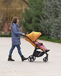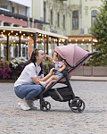 Коляска отличается более мягким ходом, благодаря амортизации на всех колесах и регулируемой ручкой для родителей. Регулируемая ручка позволяет настроить высоту ручки под рост родителей, что обеспечивает более комфортное управление коляской.