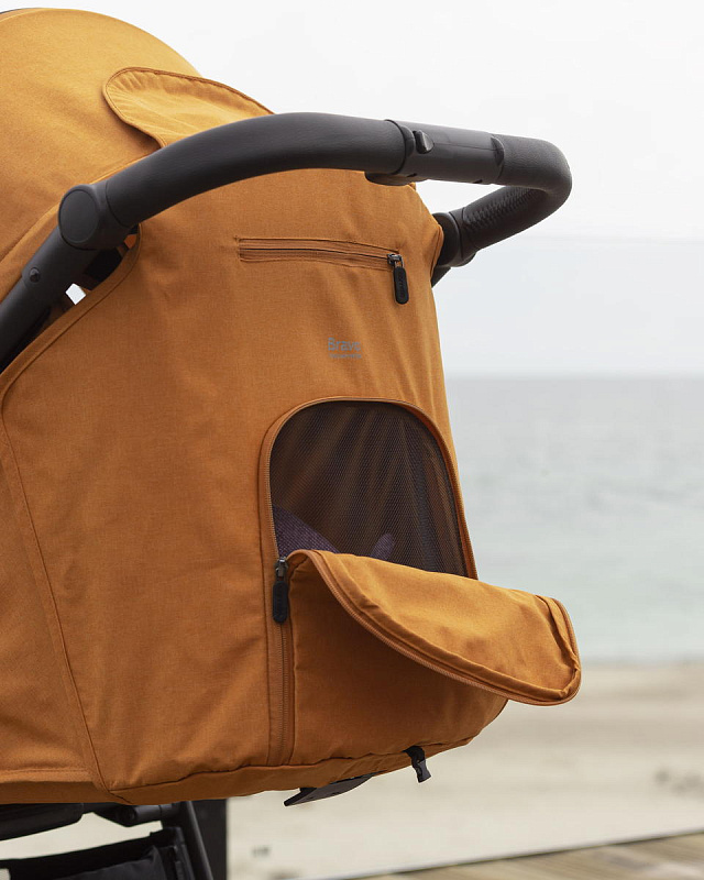 Очень большой капюшон закрывает малыша до бампера. На капюшоне есть смотровое окошко для наблюдения за малышом. В задней части капюшона предусмотрено удобное вентиляционное окошко на молнии. Это позволит обеспечить ребенку комфортную температуру в коляске в любую погоду.