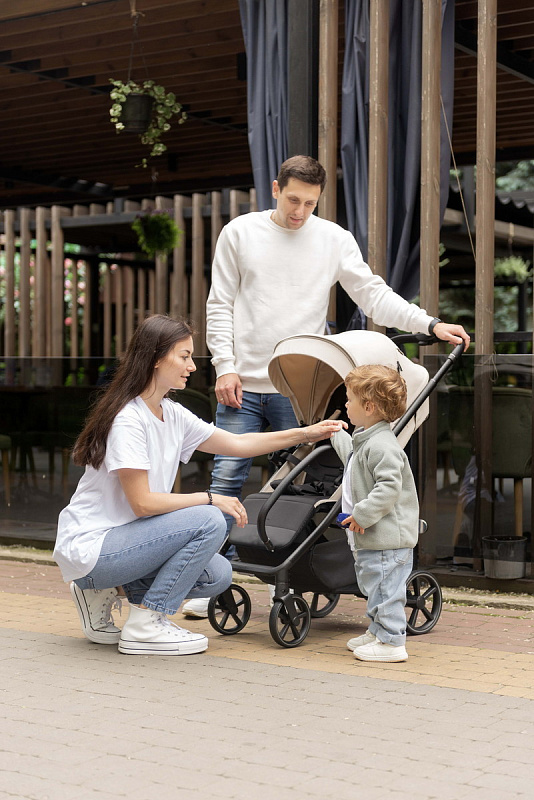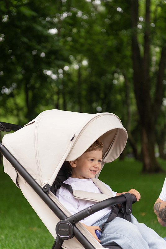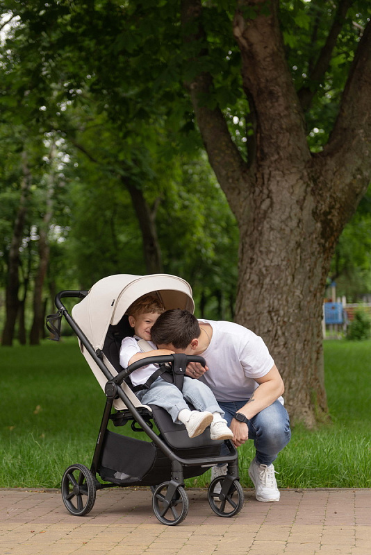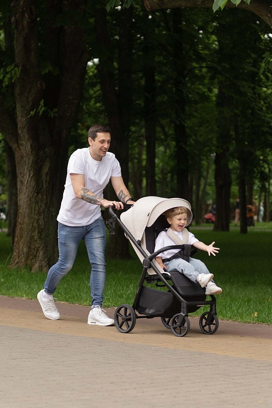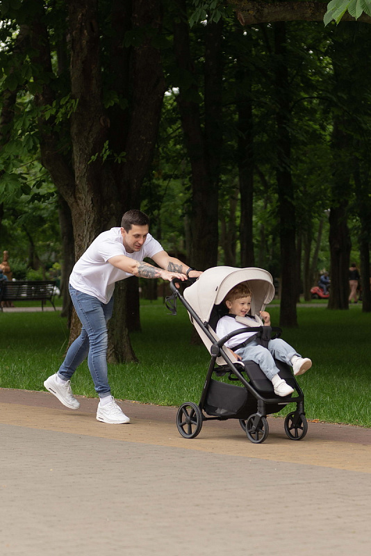 Широкое и просторное сиденье (36х90х23 см внутренние размеры) с регулируемой спинкой (до 50 см) и подножкой (18 см) обеспечивает малышу комфортное положение как во время бодрствования, так и сна. Возможность трансформации сиденья в полностью горизонтальное положение позволяет использовать коляску с первых месяцев жизни ребенка (с 6 месяцев, как указано в описании, но с горизонтальным положением возможно использование и раньше, с использованием дополнительного вкладыша). Высокий капюшон (62 см от сиденья) надежно защищает от солнца, ветра и дождя. Пятиточечные ремни безопасности, поворотный бампер и ограничитель от сползания гарантируют безопасность малыша во время прогулок. Дополнительный комфорт обеспечивает подстаканник для родителей.