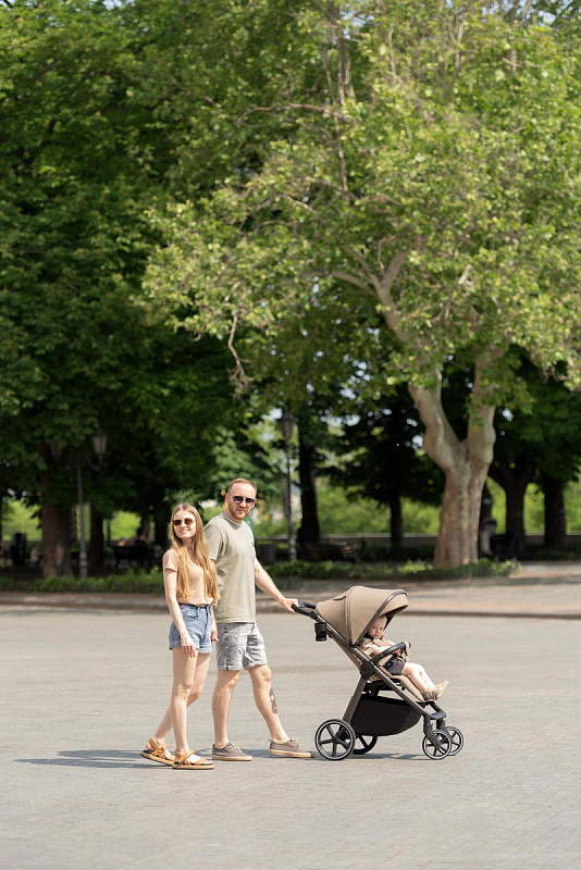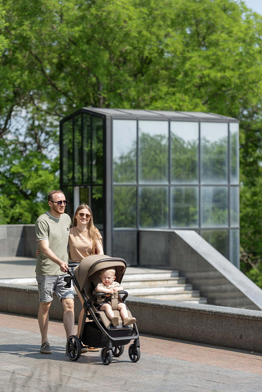 Особого внимания заслуживает усовершенствованная система амортизации. Теперь вы можете регулировать жесткость амортизации в зависимости от поверхности дороги, обеспечивая малышу комфортную поездку как по гладкому асфальту, так и по неровным дорожкам. Регулировка подножки стала ещё проще – теперь это делается одной рукой, что значительно облегчает управление коляской.