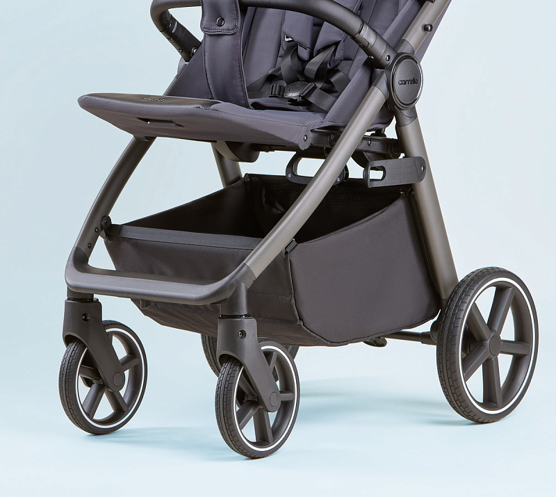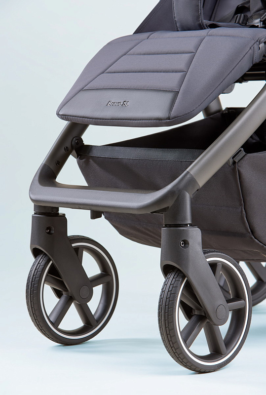 Особого внимания заслуживает усовершенствованная система амортизации. Теперь вы можете регулировать жесткость амортизации в зависимости от поверхности дороги, обеспечивая малышу комфортную поездку как по гладкому асфальту, так и по неровным дорожкам. Регулировка подножки стала ещё проще – теперь это делается одной рукой, что значительно облегчает управление коляской.