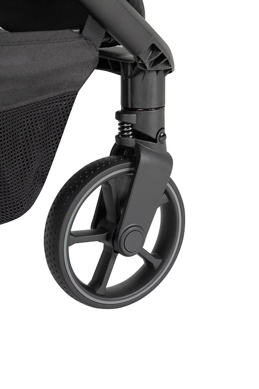 Коляска оснащена большими колесами с диаметром 15 и 20 см, что обеспечивает хорошую проходимость. Бампер коляски складывается вместе с ней, что добавляет удобства при транспортировке и хранении. Родительская ручка не имеет возможности регулировки по высоте, но это не мешает комфортному управлению.