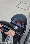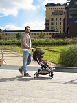 - Автоматическое складывание. Коляска сама складывается всего одним движением. В сложенном виде очень компактная и стоит без опоры.