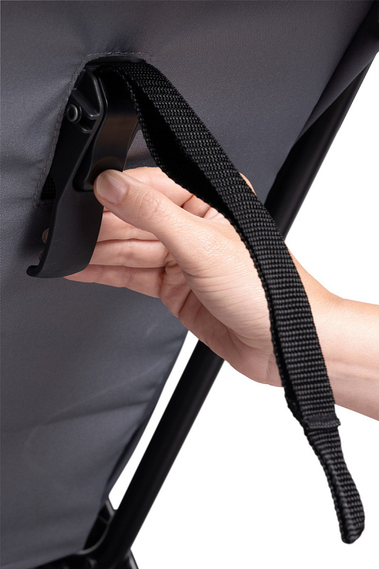 Спинка коляски Urbino полностью откидывается и может регулироваться в разных положениях благодаря ремню, которым можно управлять одной рукой.