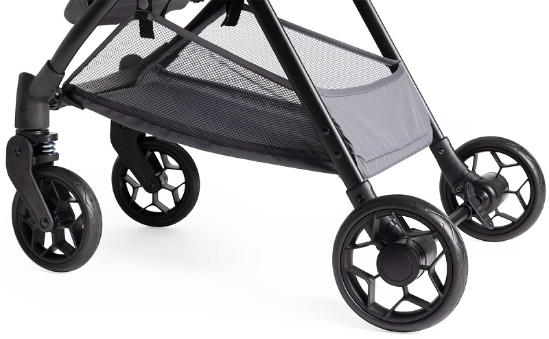 Амортизаторы на всех колесах; шарикоподшипники на задних колесах и в системе поворота для обеспечения превосходной маневренности на любых поверхностях. Передние колеса оснащены системой блокировки для движения по грунтовым дорогам.