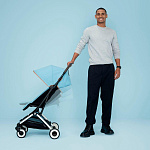 Одной рукой вам достаточно сложить Cybex Orfeo для хранения в дороге. Используйте его ремешок для переноски для еще большего удобства. Когда вы доберетесь до места назначения, разложить коляску также будет несложно.