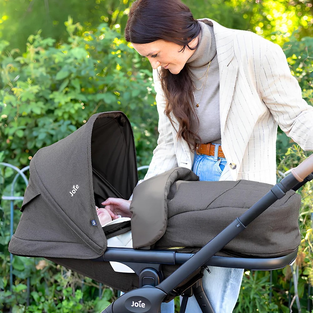 - Большой капюшон коляски Joie Honour бесшумно регулируется, защищая ребёнка от непогоды. Дополнительная секция с сетчатыми вставками по бокам открывается на молнии, а через смотровое окошко удобно наблюдать за маленьким пассажиром. За его безопасность отвечают пятиточечные ремни с мягкими накладками и магнитным замком, поворотно-откидной бампер в чехле из экокожи. Ремни можно переставлять по высоте в 3 позициях. Для прохладного времени года производитель добавил в комплект матрасик-муфту для малыша.