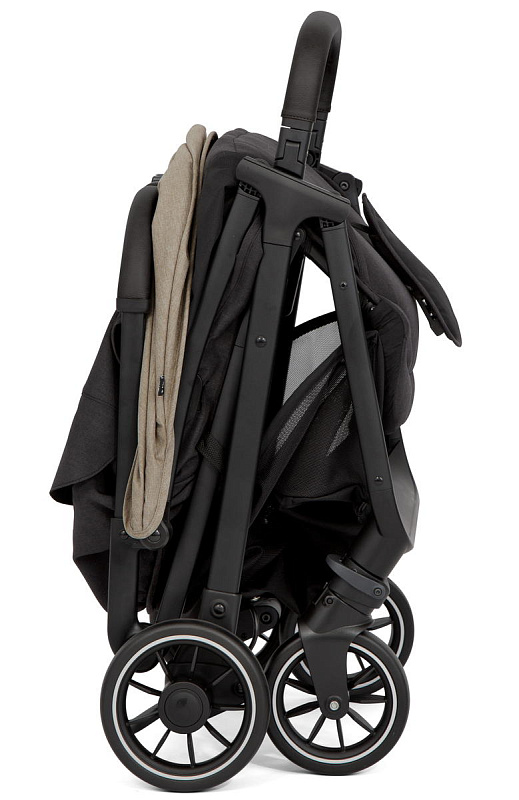 Коляска удобно складывается одной рукой до размеров, соответствующих габаритам ручной клади, что делает её оптимальной для транспортировки и хранения.